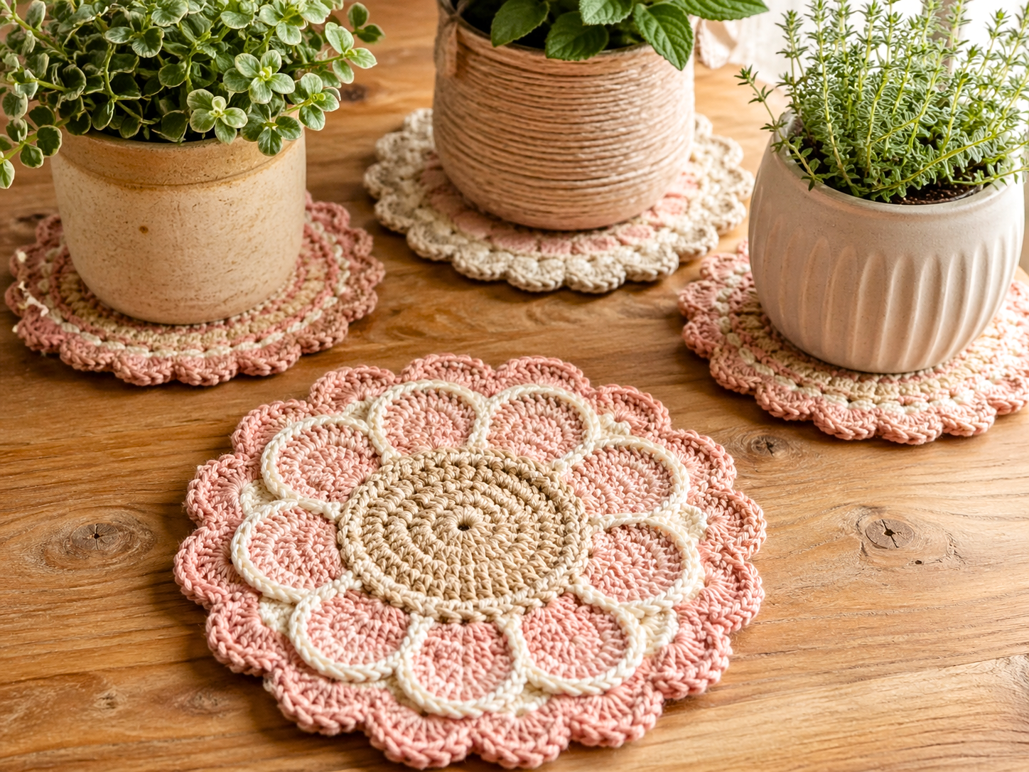 Diese Blumenuntersetzer sind für mich genau die richtige Mischung aus praktisch, hübsch und befriedigend. Sie helfen dabei, Garnreste sinnvoll zu verwerten, sind schnell genug für ein Wochenendprojekt und sehen gleichzeitig so schön aus, dass sie nicht nach "Resteverwertung zweiter Klasse" wirken — sondern nach einem kleinen, feinen Lieblingsstück. 🌷