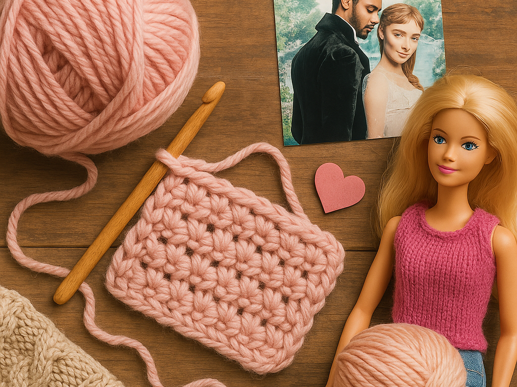 💬 Which pop culture knit inspires you most – Barbie's pink, Outlander's chunky cowls, or Bridgerton's lace shawls?